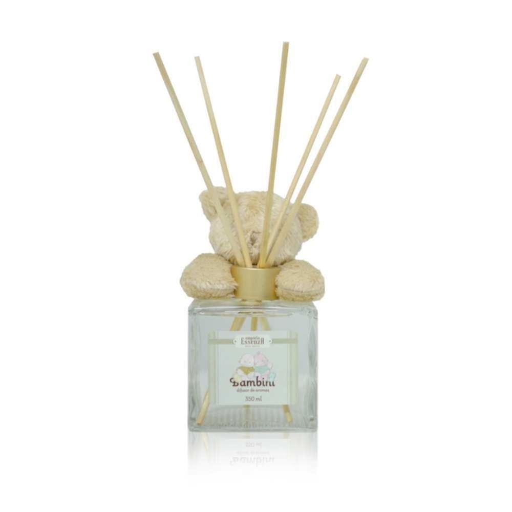 O Difusor de Aromas Bambini além de perfumar é uma ótima peça de decoração com um frasco em vidro, envolvido por um abraço de urso. O Difusor trás na sua embalagem um lindo urso de pelúcia para deixar o ambiente mais perfumado e decorado.