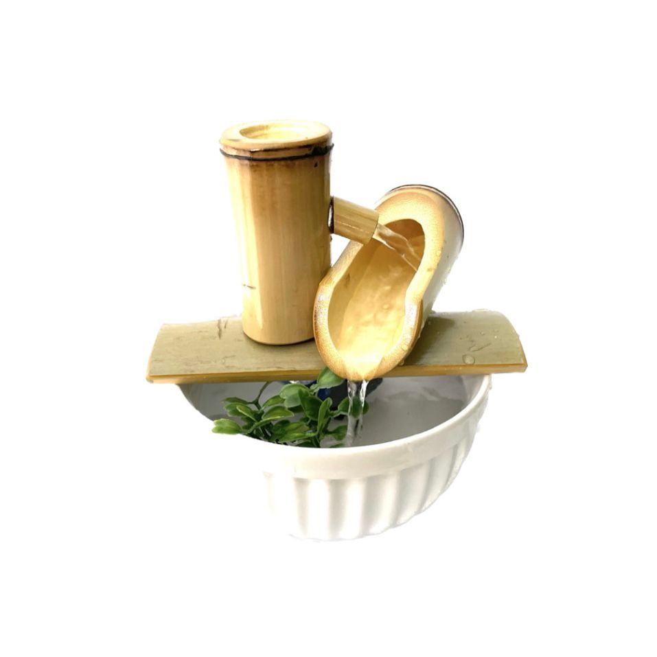 As fontes de água são utilizadas para equilibrar e purificar as energias do ambiente. A fonte de água bamboo representa paz, tranquilidade e aumenta o fluxo de energia positiva, o bamboo é um símbolo de riqueza, prosperidade, flexibilidade, fartura e força. Além disso, o som nos ajuda a remover os obstáculos da paz interior. É indicada como a melhor maneira de ativar o Feng Shui, pois a água é um calmante natural que traz tranquilidade e calmaria atráves do seu som.