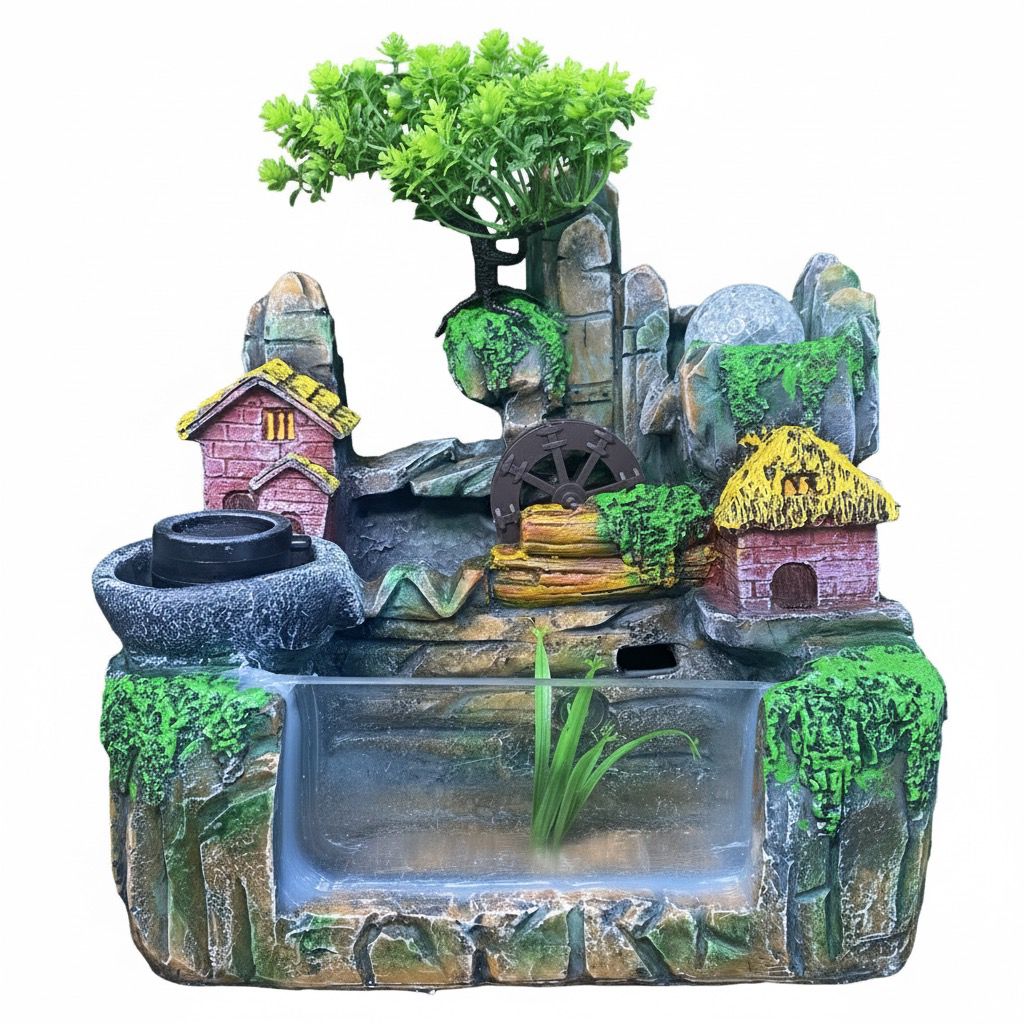 A peça apresenta uma paisagem serena com elementos detalhadamente trabalhados, a frente em vidro permite uma visualização clara e nítida do fluxo da água, criando um efeito hipnotizante e tranquilo. O movimento contínuo da água, fluindo suavementepela paisagem, adiciona um som relaxante e natural ao ambiente, promovendo uma sensação de paz e harmonia. Esta fonte é ideal para diversos ambientes, como sala de estar, escritórios, varandas ou jardins internos, adaptando-se facilmente a diferentes estilos de decoração e elevando a beleza do espaço.