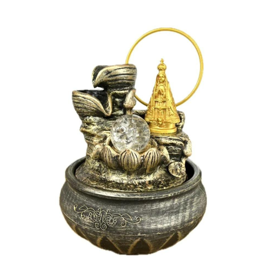 PRODUTO: Fonte de Água em Resina Nossa Senhora Aparecida Dourada com Arco B- 21 cm