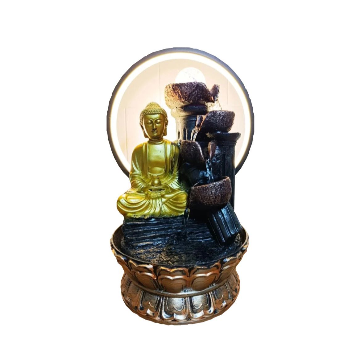 Fonte de Água em Resina Buda Meditando Arco com Led - 35 cm