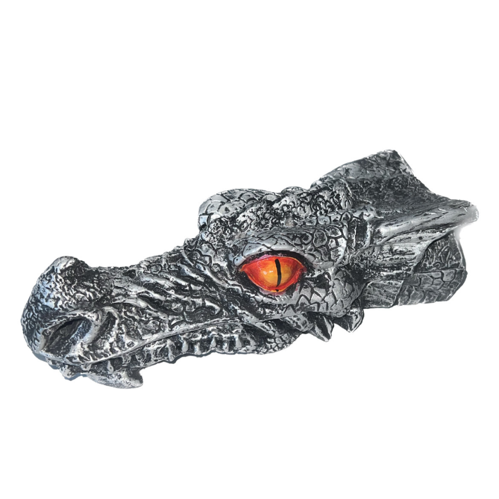 PRODUTO: Incensário Cabeça de Dragão Prata em Resina com 24cm.