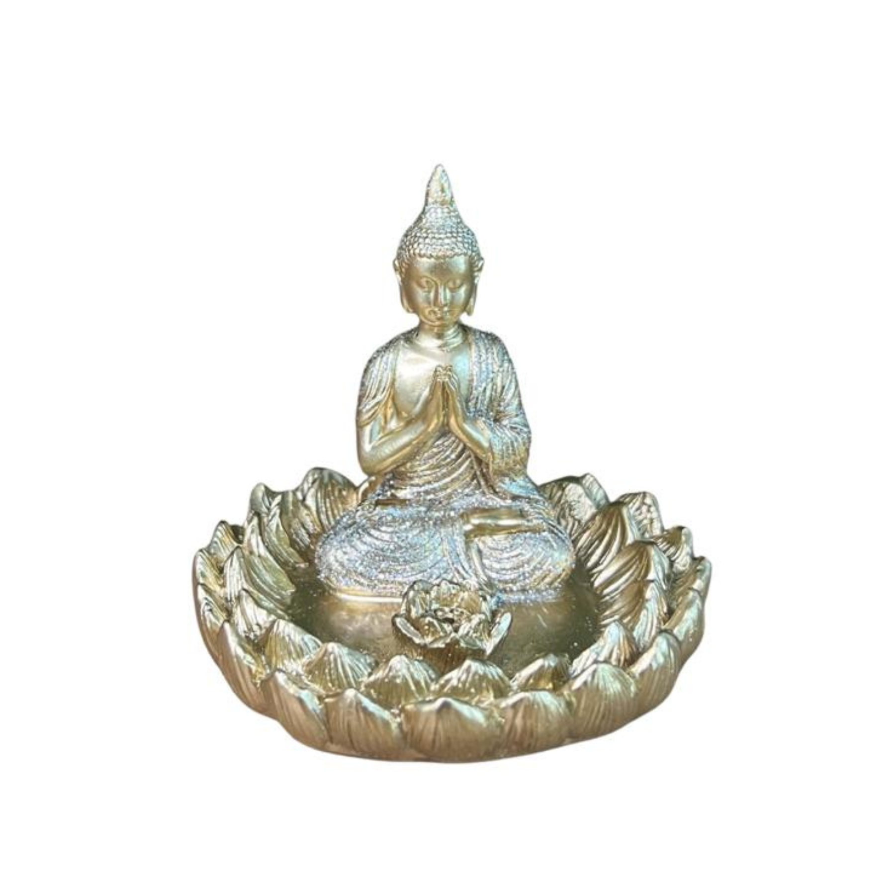 O Incensário Buda Dourado com Glitter - Modelo A é uma peça encantadora que transmite serenidade e espiritualidade. Com um acabamento dourado sofisticado e detalhes em glitter, ele destaca a figura de Buda, símbolo de iluminação, paz interior e equilíbrio.