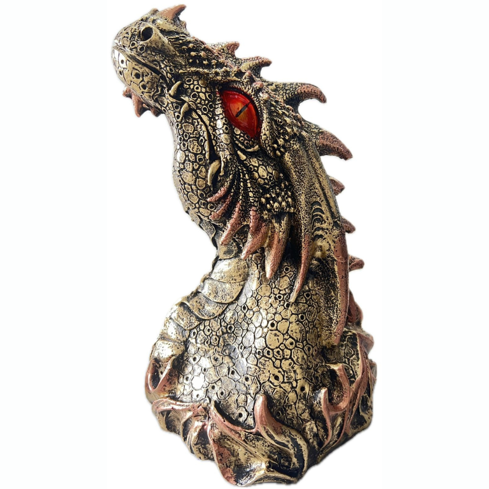 Incensário Cabeça de Dragão Vertical Dourado em Resina com 31cm