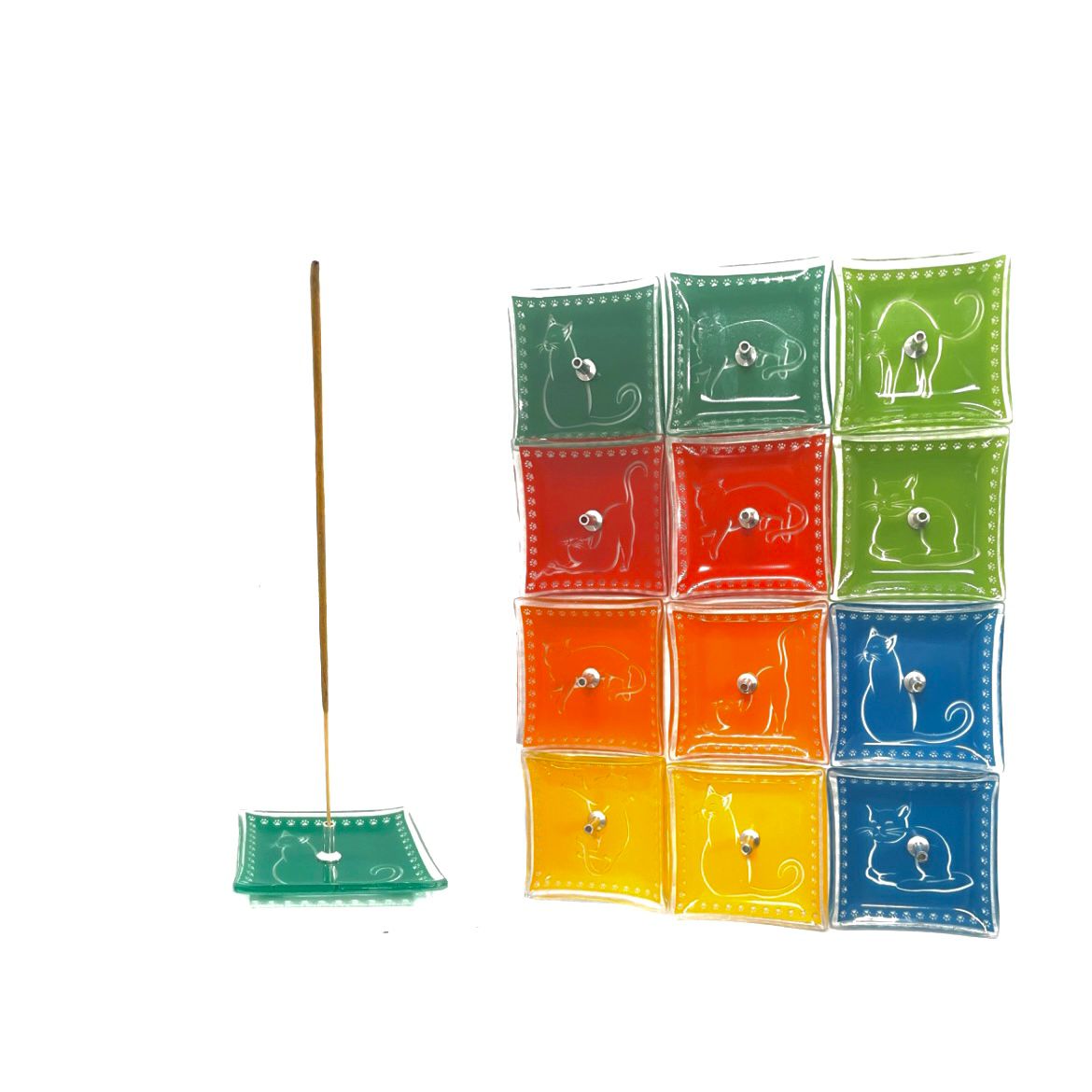 Incensário de Vidro Gatos 7x7 - Caixa com 12 unid.