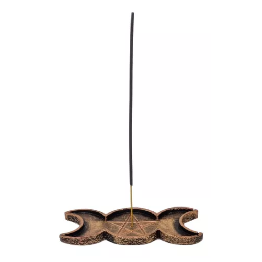 Adicione um toque de mistério e serenidade ao seu ambiente com o Incensário Fases da Lua. Esta peça única, esculpida em resina de alta qualidade, não só serve como um suporte para incensos, mas também como uma obra de arte que encanta e fascina.