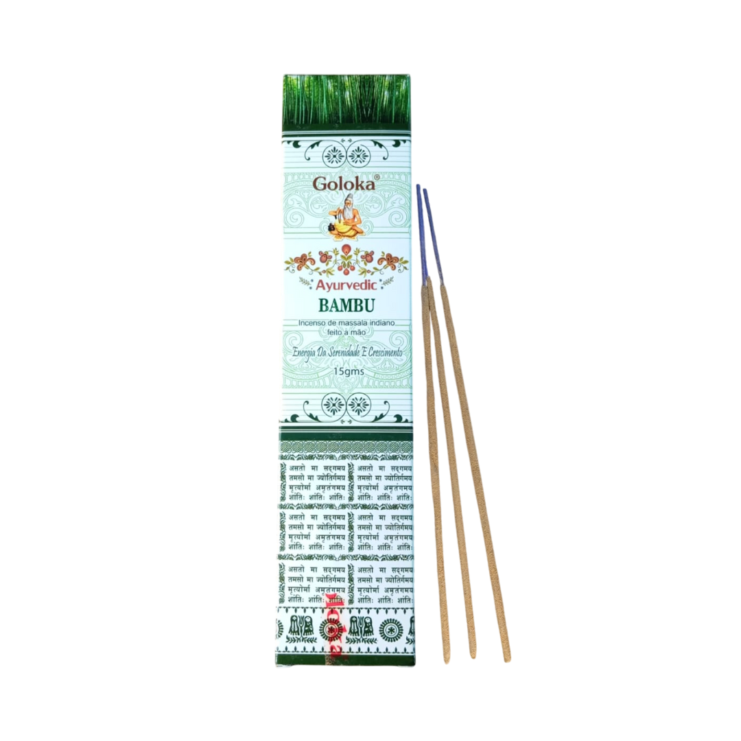 O incenso Goloka Bambu é uma escolha especial para quem busca energias de serenidade e crescimento. Produzido artesanalmente na Índia, ele combina ingredientes naturais como pó de carvão vegetal, resinas e óleos essenciais, criando uma fragrância suave e harmoniosa. Este aroma é ideal para purificar o ambiente, promover tranquilidade e criar uma atmosfera de paz.