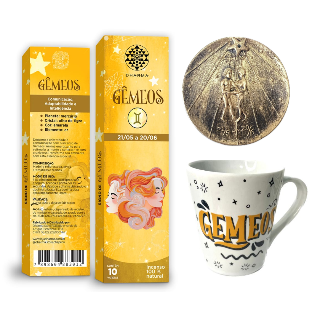 PRODUTO: Kit Signo Gêmeos - 1 Caneca, + 1 Incensário, + 1 Incenso