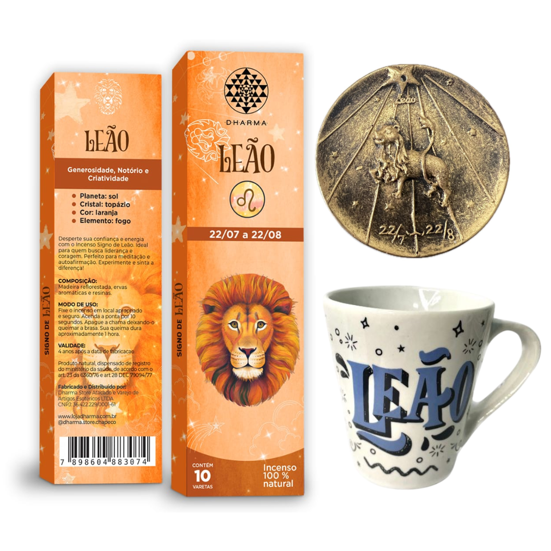 Kit Signo Leão - 1 Caneca, + 1 Incensário, + 1 Incenso