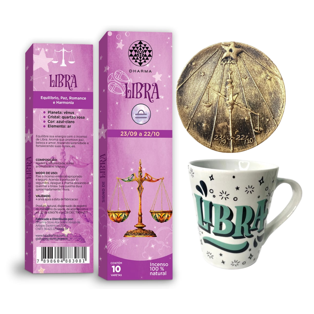 Kit Signo Libra - 1 Caneca, + 1 Incensário, + 1 Incenso