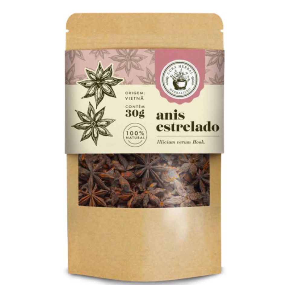 O anis-estrelado, também conhecido como estrela-de-anis, é uma especiaria que é feita a partir do fruto de uma espécie de árvore asiática chamada de Ilicium verum. Ele é rico em vitaminas C e do complexo B, ferro, magnésio, cobre e cálcio. Mas além de seus macro e micronutrientes, ele tem compostos químicos importantes para a saúde como fenilpropanóides, flavonoides (quercetina, kampeferol), neolignanos, monoterpenóides e sesquiterpenóides. O Anis-estrelado pode ser usado como anti-inflamatório, calmante e digestivo.