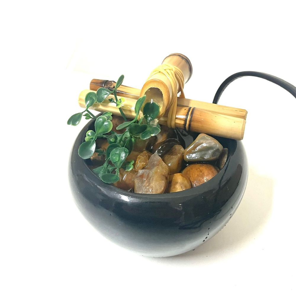 As fontes de água são utilizadas para equilibrar e purificar as energias do ambiente. A fonte de água com bamboo representa paz, tranquilidade e aumenta o fluxo de energia positiva. O bamboo é um símbolo de riqueza, prosperidade, flexibilidade, fartura e força. Além disso, o som nos ajuda a remover os obstáculos da paz interior.