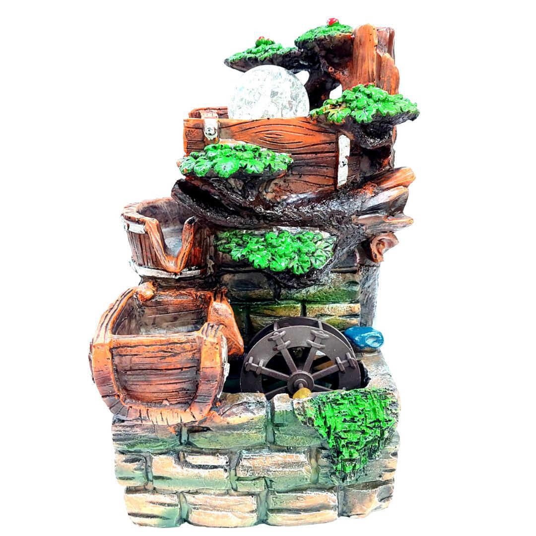 PRODUTO : Fonte de Água em Resina Barris Com Bola e Roda- M