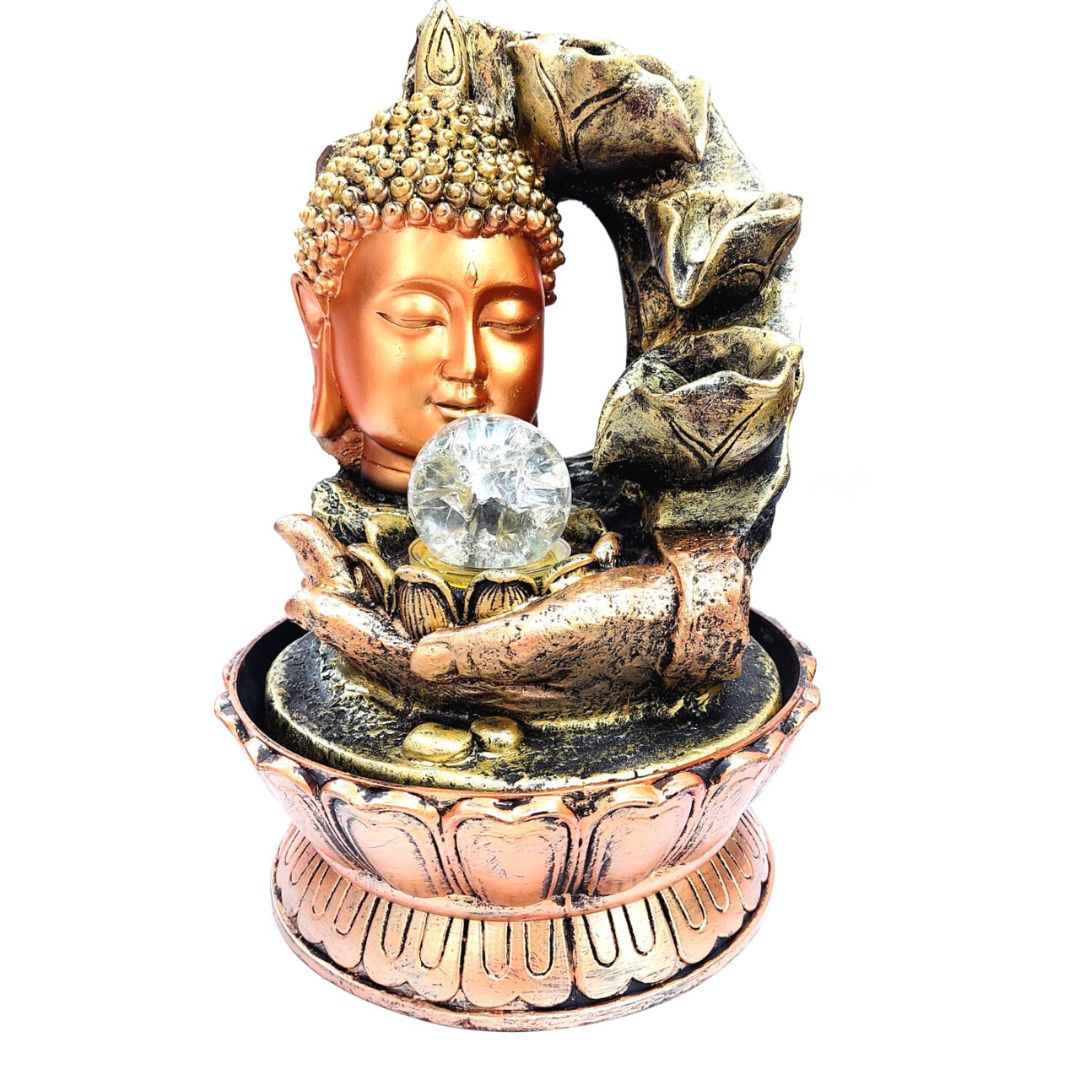 PRODUTO :Fonte de Água em Resina Cabeça de Buda e Mão com Bola 4Q