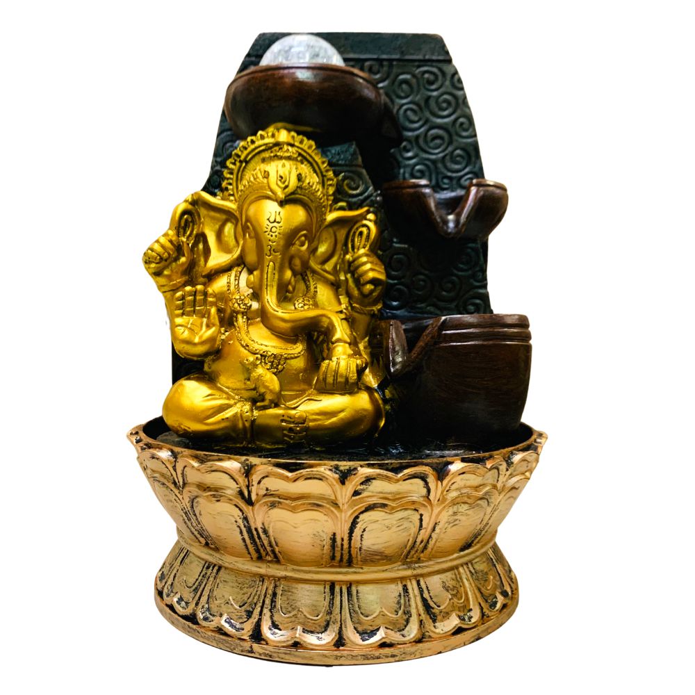 PRODUTO:Fonte de Água em Resina Ganesha Dourado 3 quedas