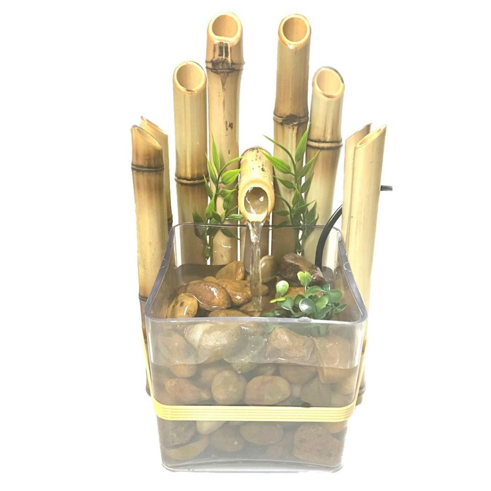 As fontes de água são utilizadas para equilibrar e purificar as energias do ambiente. A fonte de água com bamboo representa paz, tranquilidade e aumenta o fluxo de energia positiva. O bamboo é um símbolo de riqueza, prosperidade, flexibilidade, fartura e força. Além disso, o som nos ajuda a remover os obstáculos da paz interior.