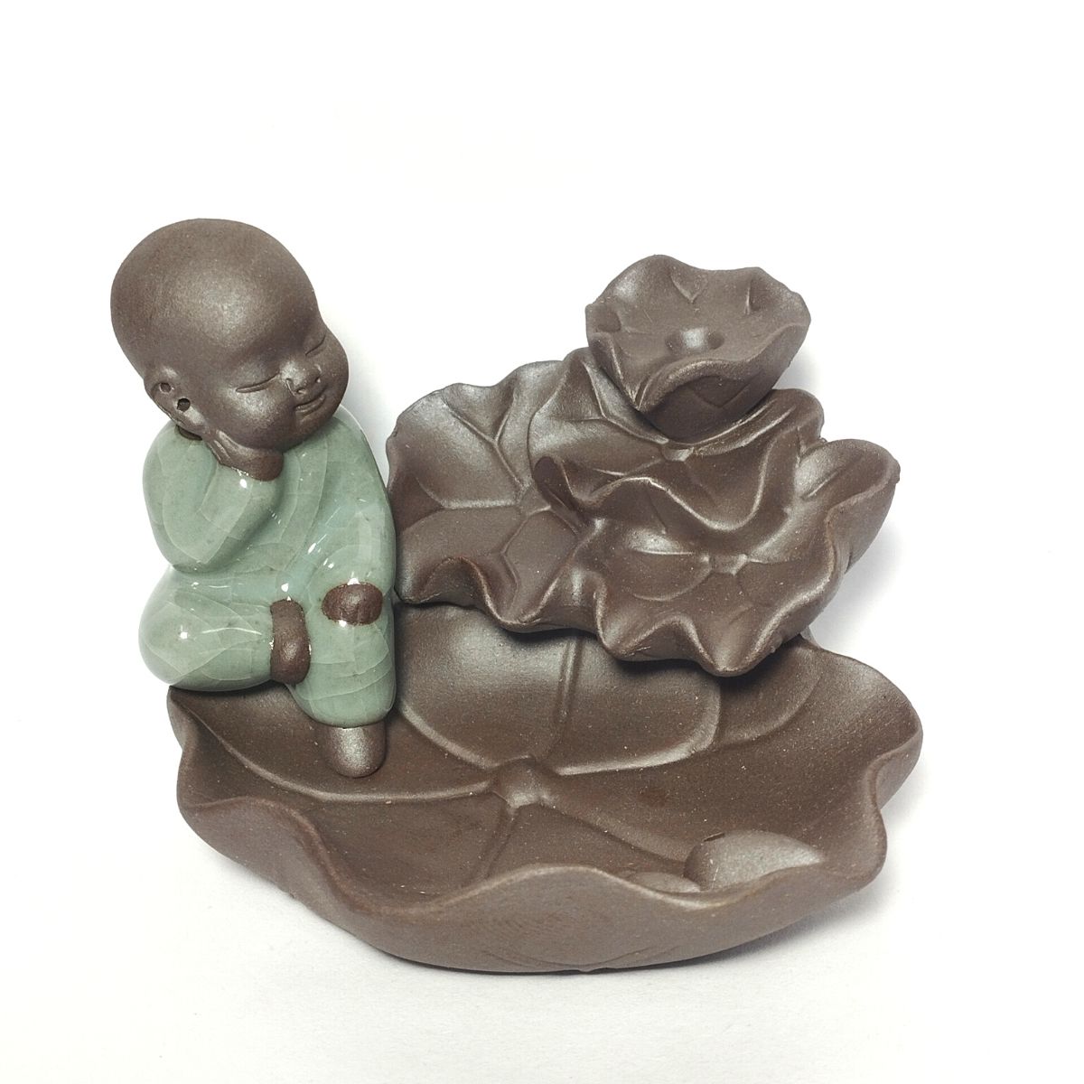 Incensário Cascata Porcelana Monge Verde Pensando 8cm