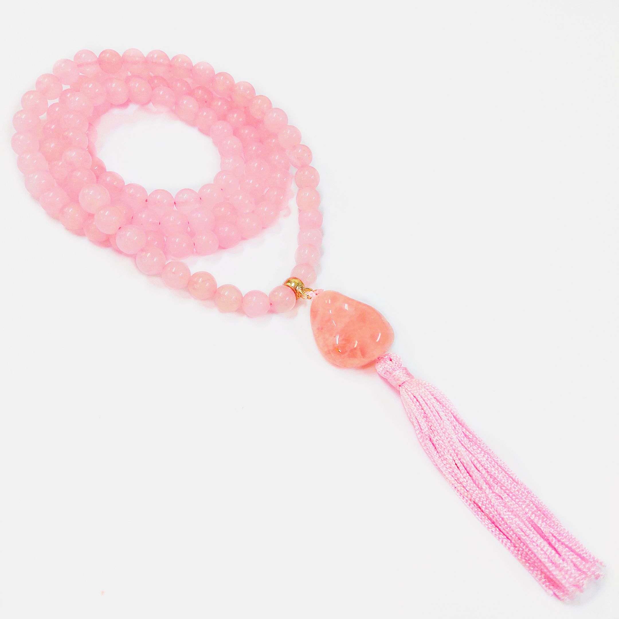 Japamala Pedra Quartzo Rosa com Pedra Ponta - 108 contas