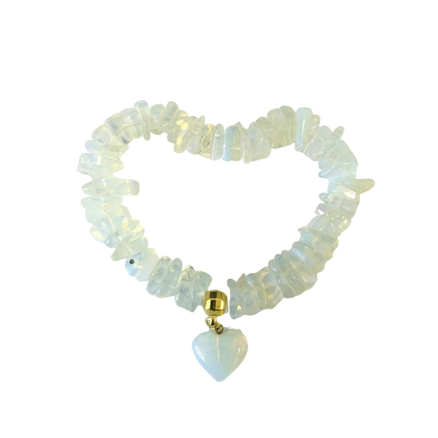 PRODUTO: Pedra Pulseira Opalina com Pingente Coração