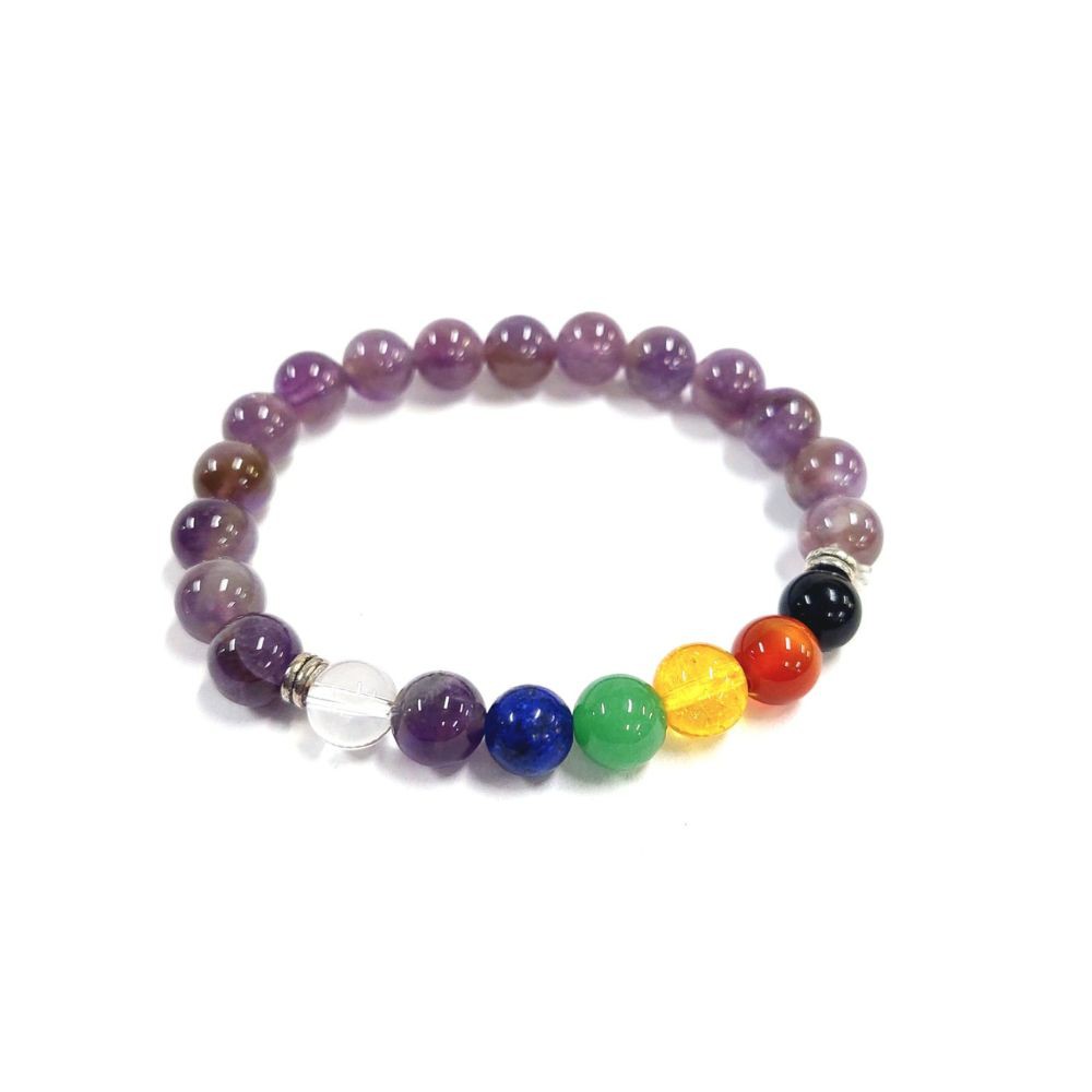 Pulseira Pedra Ametista 7 Chakras Ametista é uma pedra espiritual. Ela carrega o arquétipo da sabedoria, é capaz de moldar sentimentos para o sentido de equilíbrio, vitalidade e elevação espirtiual. É considerada pedra da transmutação, pois filtra energias ruins e as transforma em energias positivas. Segundo a tradução sânscrito, Chakra significa "roda de luz". No Hindu, é conhecido como o centro de absorção e controle de energias e simbolizam os diferentes "corpos" que estão presentes no ser humano, como o físico, o mental, o emocional e o energético. Estes estão localizados ao longo da coluna vertebral. Os chakras são contados de baixo para cima, começando pelo base da coluna vertebral. Ele segue as cores do arco-íris e possuem diferentes significados: VERMELHO: estimula o instinto, segurança e a flueza; LARANJA: estimula a alegria, libertação e a paciência; AMARELO: estimula poder, controle e autoestima; VERDE: desperta o amor, a compaixão e o perdão; AZUL: estimula a comunicação e a expressão; ROXO: desperta a intuição e a percepção sobre determinadas atitudes; ROSA: estimula a transcedência e a espiritualidade; A Pulseira Pedra Cascalho 07 Chakras - Ametista é um ótimo acessório para o dia a dia que permite manter seu campo áurico distante de más vibrações. ESPECIFICAÇÕES: PRODUTO: Pulseira Pedra Ametista 7 Chakras QUANTIDADE: 1 Pulseira DIMENSÕES: Circunferência 7 cm, pulseira com fio de silicone podendo ajustar ao braço. MATERIAL: Pedra Natural Gratidão _/\_ Muita Luz!
