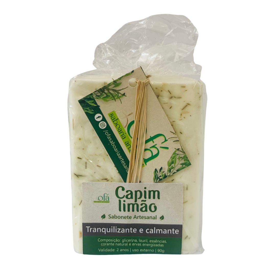 Sabonete natural feito artesanalmente com aroma de capim limão, atua como tranquilizante e calmante.